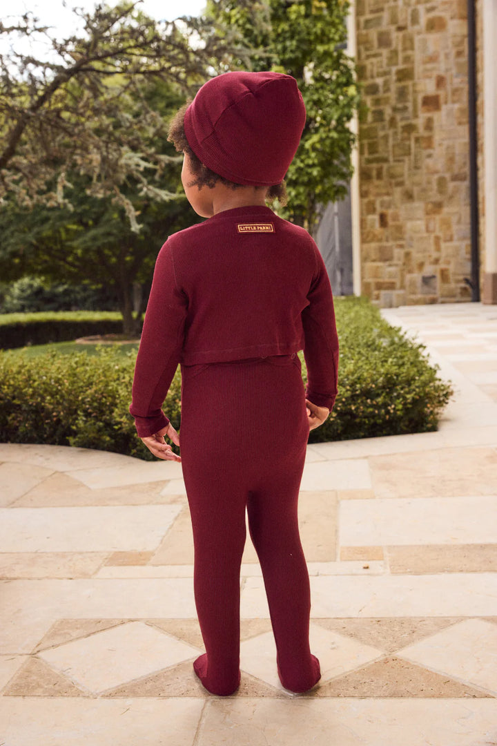 3pc set includes footie, shrug and beanie.